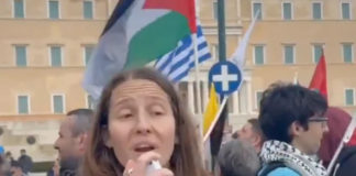 Greek protesters glorify ‘Axis of Resistance’ with banner featuring Hamas, Hezbollah...
