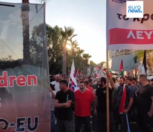 Riot police block pro-Palestine protesters from approaching Israeli cruise ship in Greece