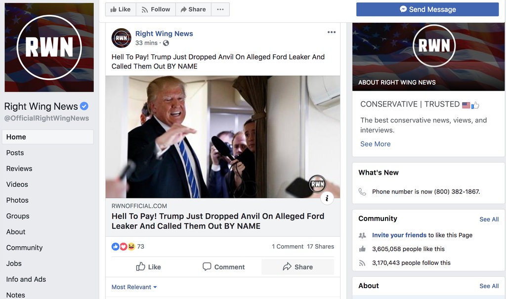 After Dr. Blasey testified, Right Wing News posted several false stories about her — including the suggestion that her lawyers were being bribed by Democrats — and then used the network of Facebook pages and accounts to share the pieces so that they proliferated online quickly, social media researchers said.