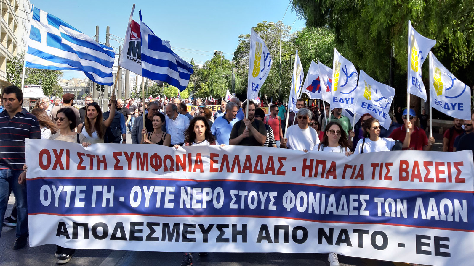 “We say a stentorian NO to the military agreement between Greece and the USA,” General Secretary of KKE, Dimitris Koutsoumpas, said during the protest march. “The signing of the new agreement between Greece and the US, and in particular the maintenance and expansion of the US military bases in Greece, will only lead to even greater insecurity for the Greek people, it will further destabilize the region, to an even greater involvement in interventions, on missions overseas and in imperialist wars.That is why we have a stentorian “no” to all of them today. We continue the struggle, we continue the resistance,” he said.