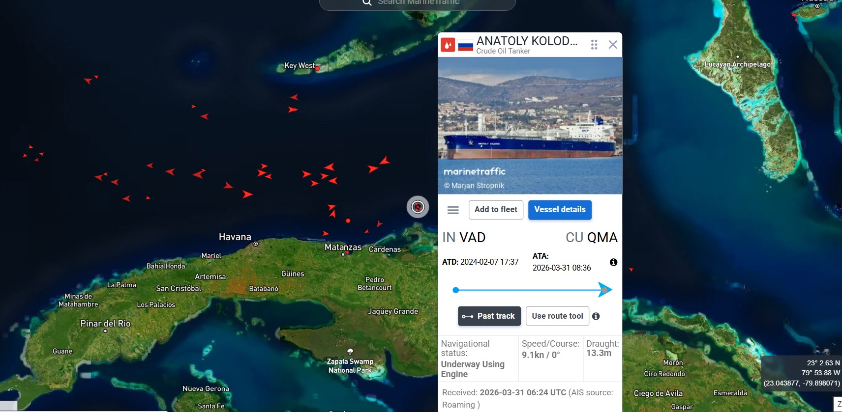 Several weeks ago, the Kremlin announced that the oil tanker “Anatoly Kolodkin” was sailing in international waters to deliver 100,000 of barrels of oil to Cuba as it faces a severe energy crisis due to the tightened US blockade. According to Russia, the oil tanker arrived on March 30.