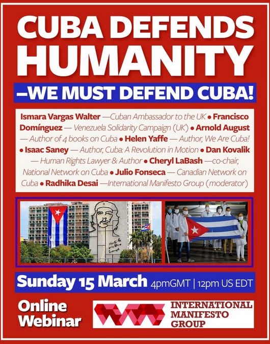 This special webinar will assess the prospects for the Cuban Revolution at this critical moment. We will also highlight the support being provided by Cuba’s allies – and the work being done in countries such as Britain, the US, and Canada – with a view to building the broadest possible solidarity with Cuba.