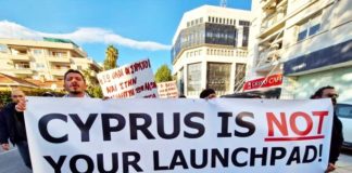 Protests grow as attack on British military site stirs fears that Cyprus is being dragged into a regional conflict.